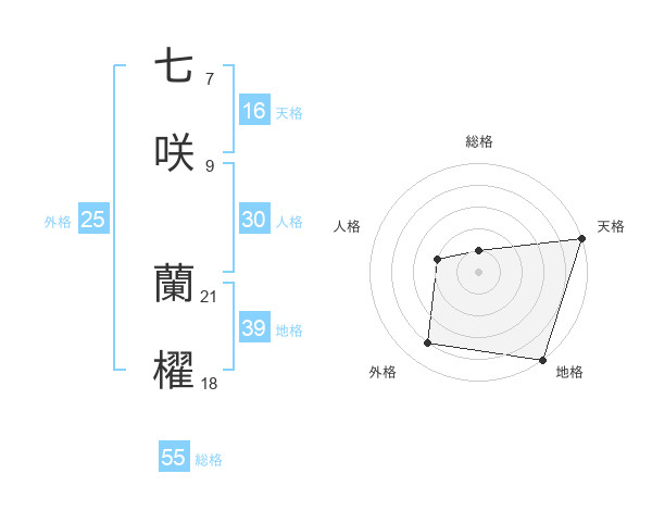 七咲 蘭櫂さんの総格は55画の1点!