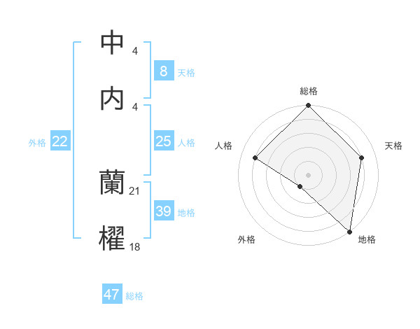 中内 蘭櫂さんの総格は47画の5点!