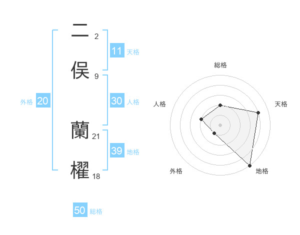 二俣 蘭櫂さんの総格は50画の2点!