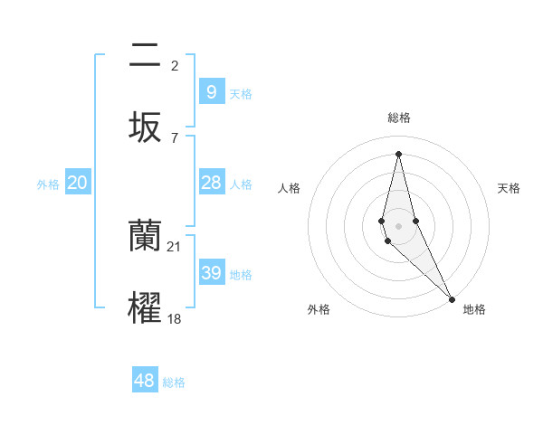 二坂 蘭櫂さんの総格は48画の4点!