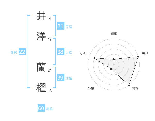 井澤 蘭櫂さんの外格は22画の1点!