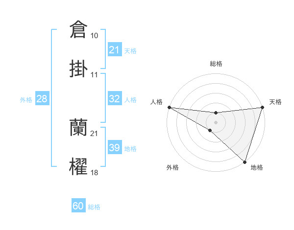 倉掛 蘭櫂さんを姓名の画数から五運を鑑定