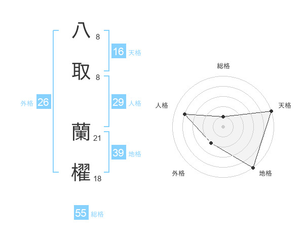 八取 蘭櫂さんを姓名の画数から五運を鑑定