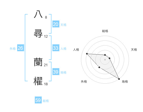 八尋 蘭櫂さんの天格は20画の1点!