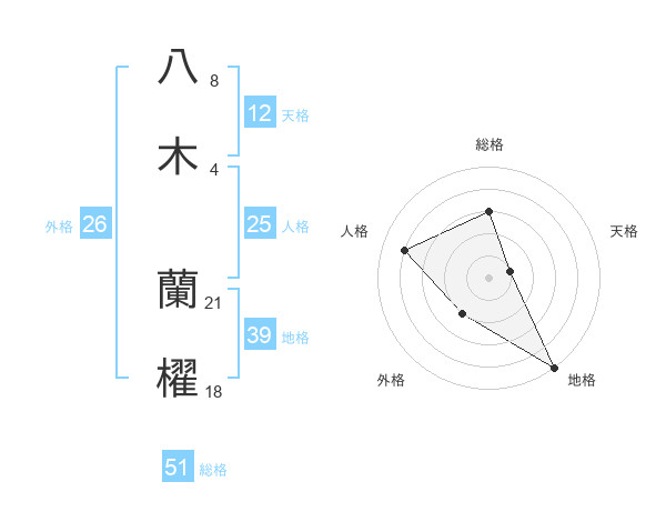 八木 蘭櫂さんの総格は51画の3点!
