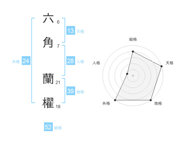 六角 蘭櫂さんを姓名の画数から五運を鑑定