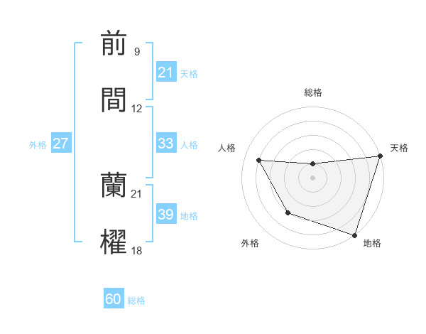 前間 蘭櫂さんの総格は60画の1点!