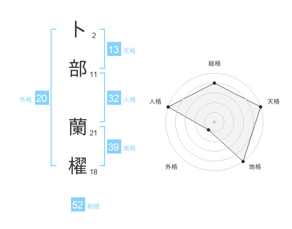 卜部 蘭櫂さんを姓名の画数から五運を鑑定