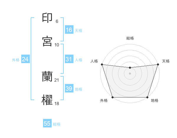 印宮 蘭櫂さんを姓名の画数から五運を鑑定