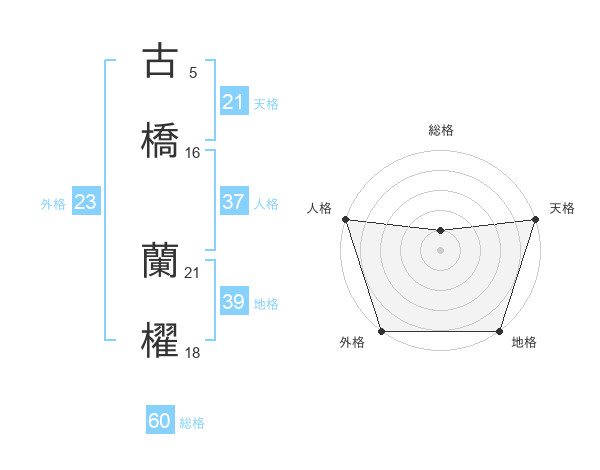 古橋 蘭櫂さんを姓名の画数から五運を鑑定