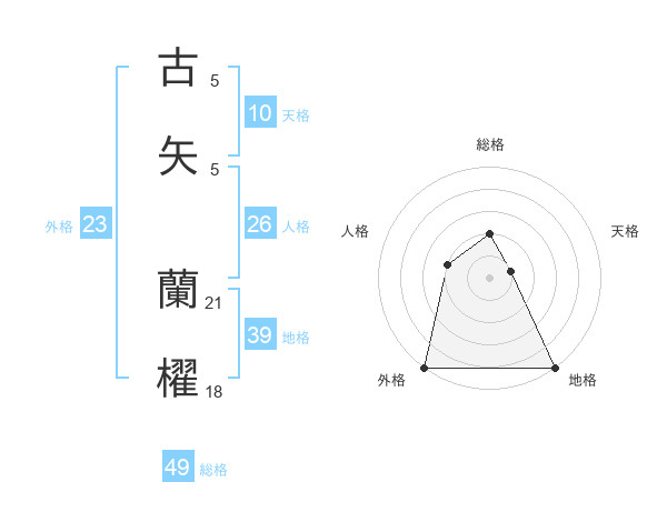 古矢 蘭櫂さんを姓名の画数から五運を鑑定