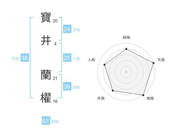 寶井 蘭櫂さんを姓名の画数から五運を鑑定