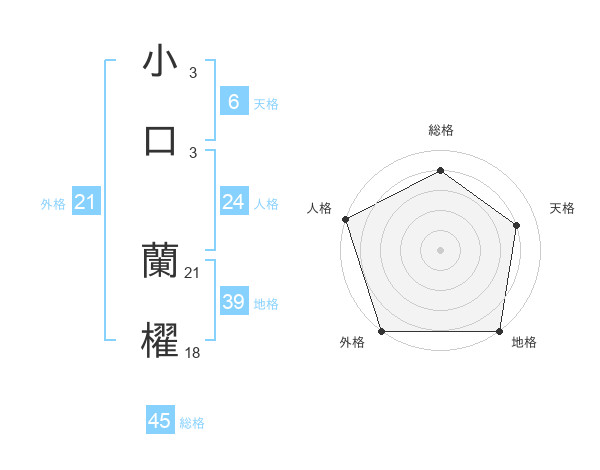 小口 蘭櫂さんの総格は45画の4点!