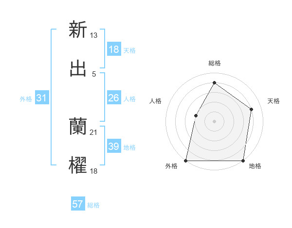 新出 蘭櫂さんの外格は31画の5点!