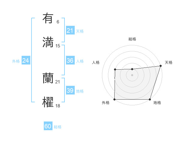 有満 蘭櫂さんの外格は24画の5点!