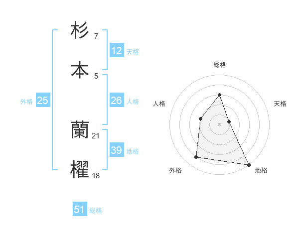 杉本 蘭櫂さんの総格は51画の3点!