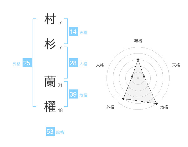 村杉 蘭櫂さんの総格は53画の3点!