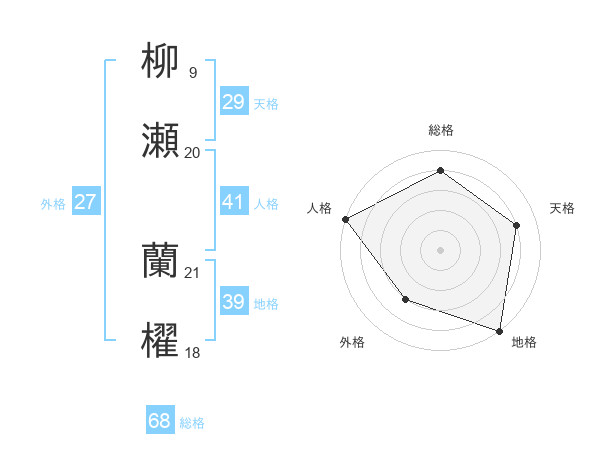 柳瀬 蘭櫂さんの総格は68画の4点!