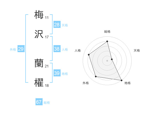 梅沢 蘭櫂さんを姓名の画数から五運を鑑定