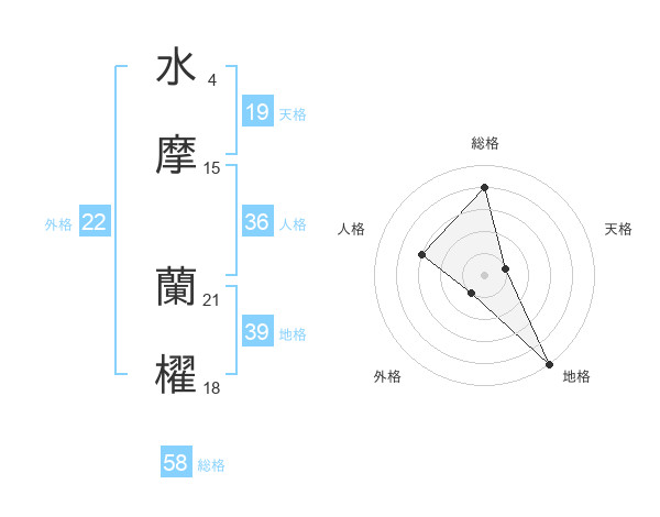 水摩 蘭櫂さんを姓名の画数から五運を鑑定