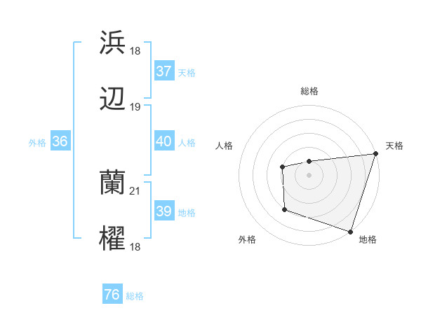 浜辺 蘭櫂さんを姓名の画数から五運を鑑定