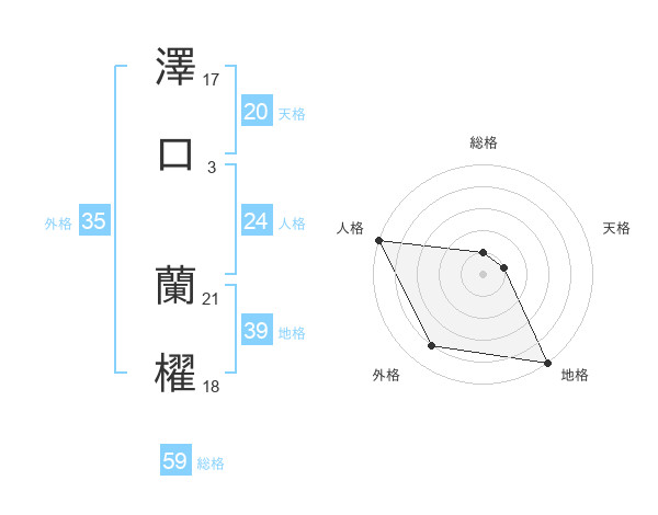 澤口 蘭櫂さんの天格は20画の1点!