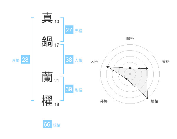 真鍋 蘭櫂さんを姓名の画数から五運を鑑定