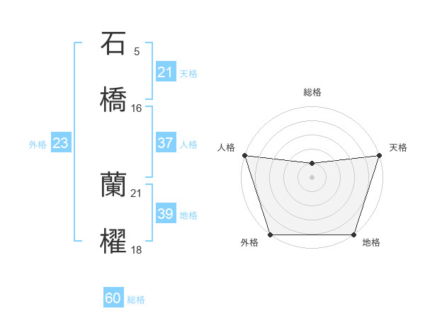 石橋 蘭櫂さんの総格は60画の1点!