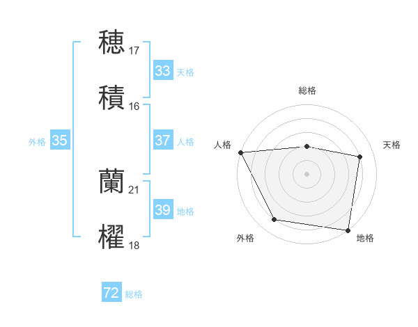 穂積 蘭櫂さんの総格は72画の2点!