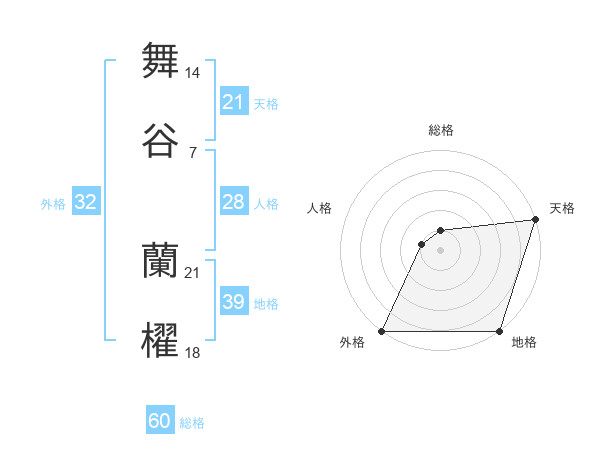 舞谷 蘭櫂さんを姓名の画数から五運を鑑定