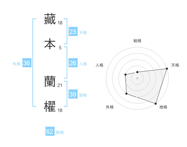 藏本 蘭櫂さんを姓名の画数から五運を鑑定
