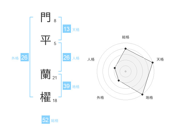 門平 蘭櫂さんの総格は52画の4点!