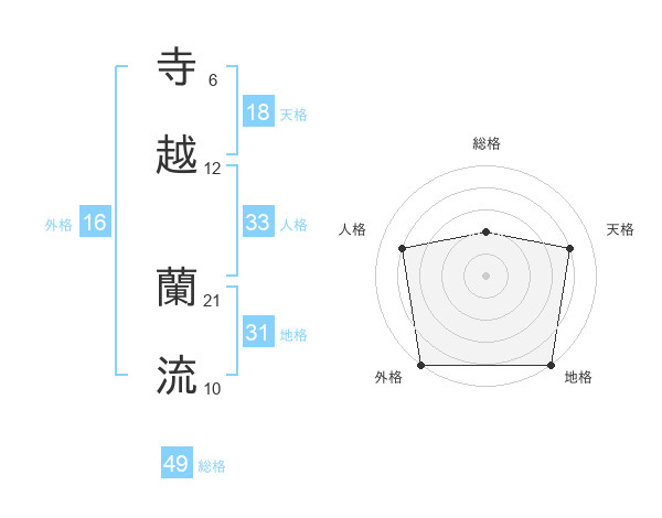 寺越 蘭流さんを姓名の画数から五運を鑑定