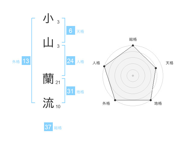 小山 蘭流さんの総格は37画の5点!