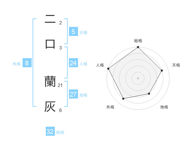 二口 蘭灰さんの総格は32画の5点!