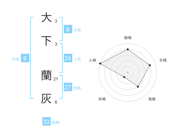 大下 蘭灰さんを姓名の画数から五運を鑑定