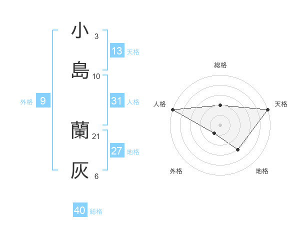 小島 蘭灰さんを姓名の画数から五運を鑑定