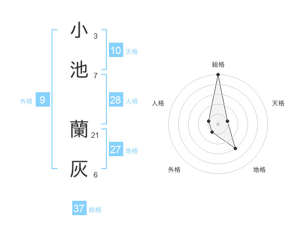 小池 蘭灰さんの総格は37画の5点!