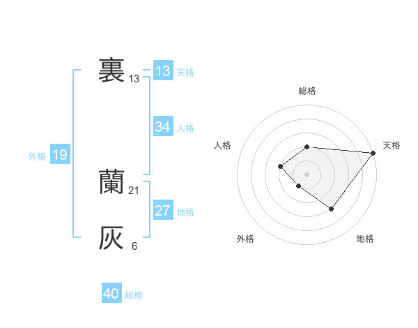 裏 蘭灰さんの天格は13画の5点!