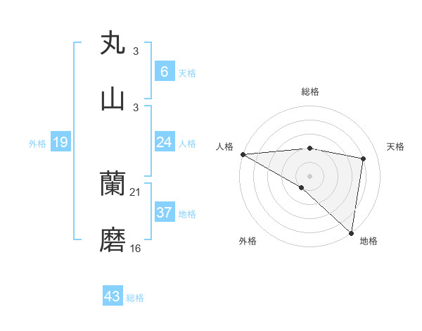 丸山 蘭磨さんの総格は43画の2点!