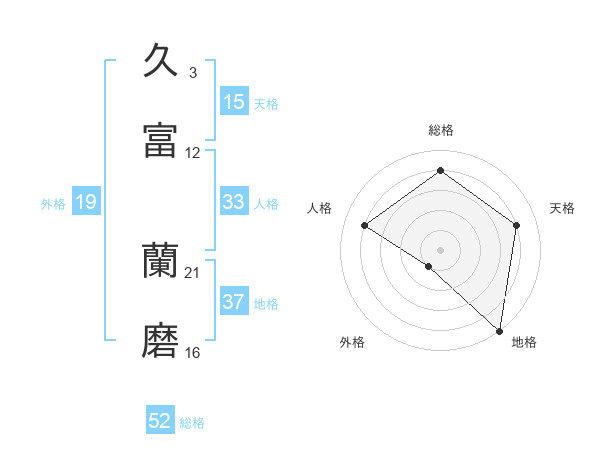 久富 蘭磨さんの総格は52画の4点!