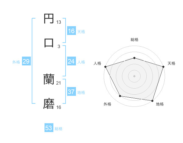 円口 蘭磨さんの総格は53画の3点!