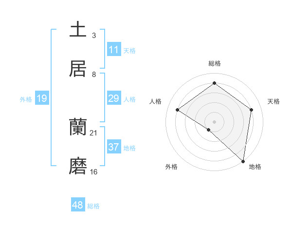 土居 蘭磨さんを姓名の画数から五運を鑑定