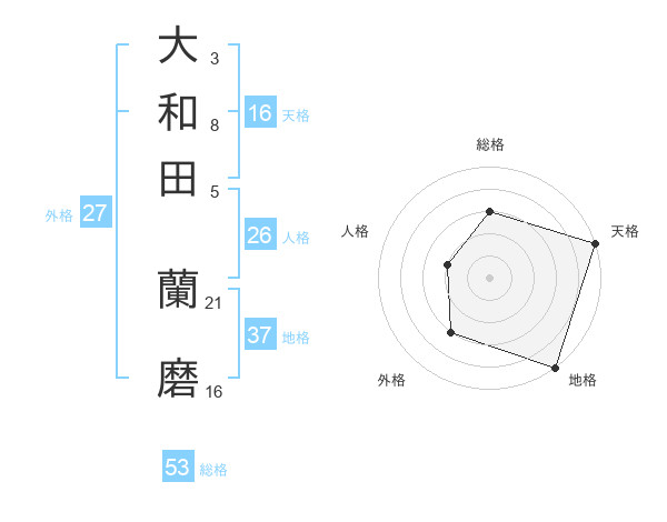 大和田 蘭磨さんを姓名の画数から五運を鑑定