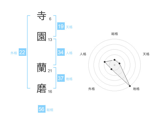 寺園 蘭磨さんの地格は37画の5点!