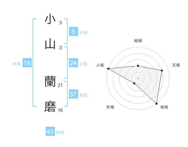 小山 蘭磨さんを姓名の画数から五運を鑑定