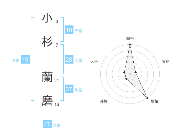 小杉 蘭磨さんを姓名の画数から五運を鑑定