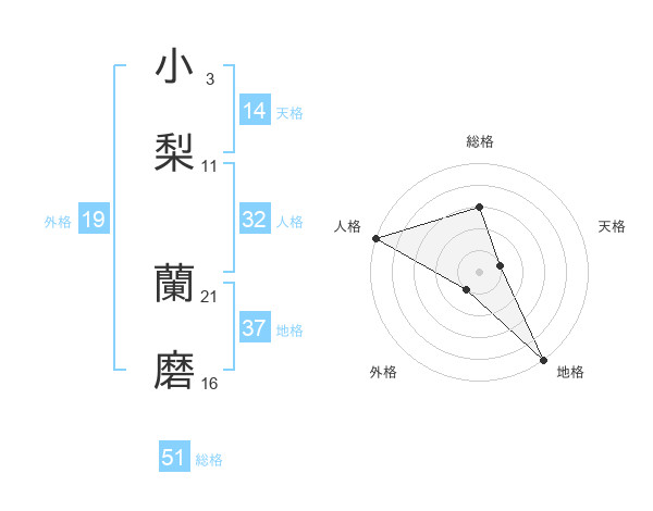 小梨 蘭磨さんの総格は51画の3点!