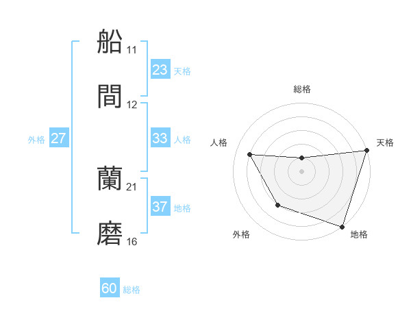 船間 蘭磨さんを姓名の画数から五運を鑑定