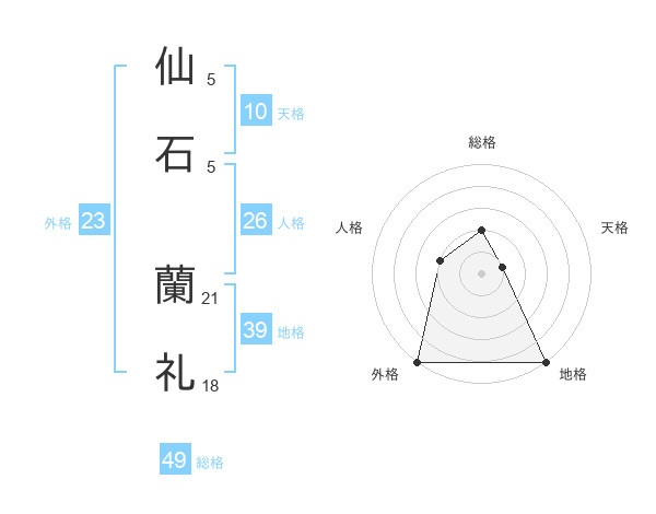 仙石 蘭礼さんを姓名の画数から五運を鑑定